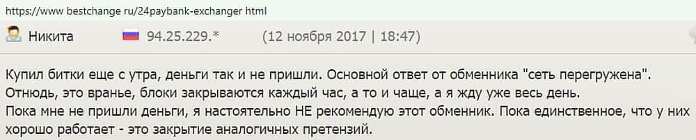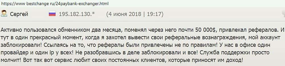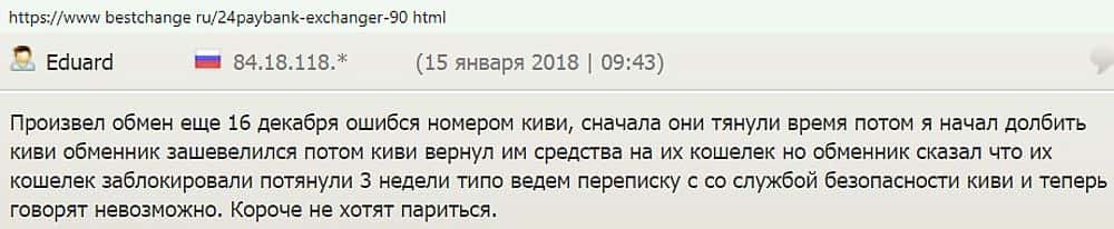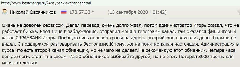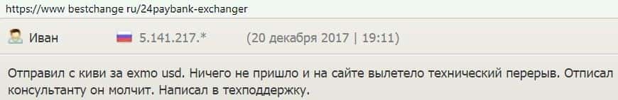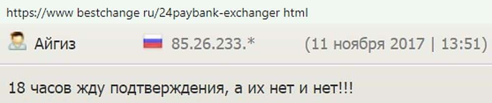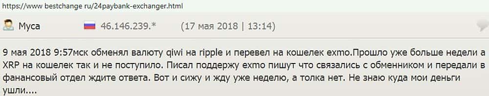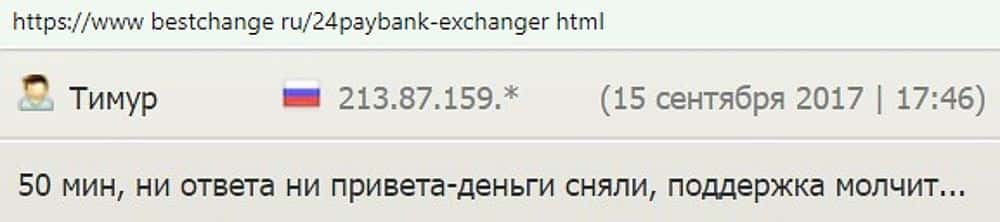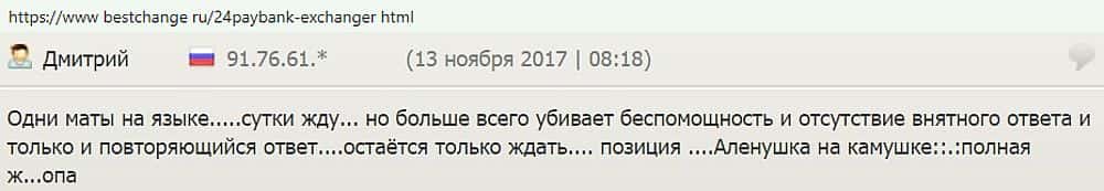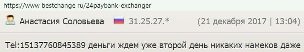Как отмечает следующая жертва, в лохотроне 24 Пей Банк вообще никто не хочет работать. Этот человек думает, что деньги еще придут, но на самом деле его скорее всего обворовали.