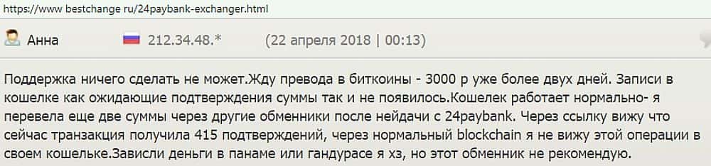 Некоторые из пользователей не только не могут дождаться выплаты из фиктивного проекта 24 Пей Банк, а и завести в него деньги, поскольку те теряются еще по пути к депозитному счету.