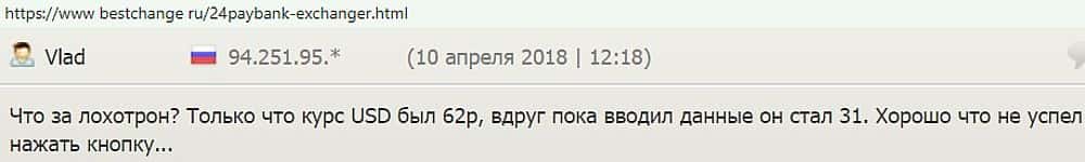 Как сообщают люди, система кидал 24PayBank Net часто глючит. И в процессе этих глюков может теряться внушительная сумма, или меняться курс. Поддержка ничего с этим не делает.