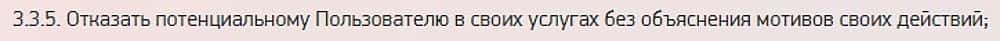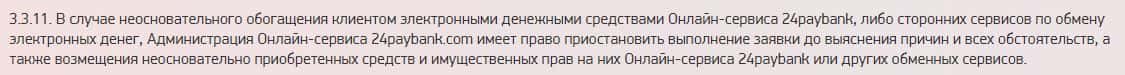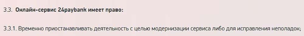 А могут и просто отказать клиенту в использовании своего сервиса, тем самым прикарманив все средства, которые пользователь опрометчиво вложил в шарашку 24 Пей Банк.