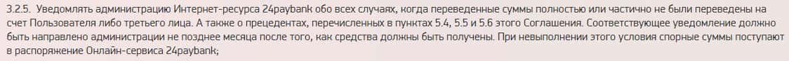 Почти на треть года проходимцы 24PayBank Net могут заморозить любую из обменных операций и проводить так называемые "расследования", пока жертва забудет про средства.
