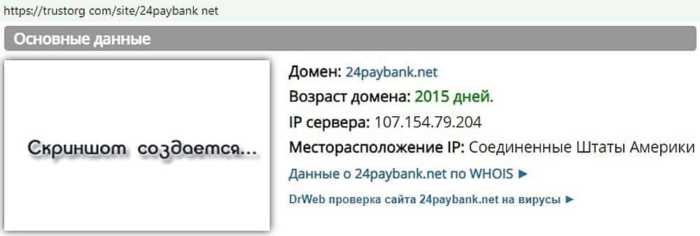 Возраст доменного имени, которое прикручено к афере 24PayBank Net составляет более 5 лет, но с большой долей вероятности мошенники просто перекупили уже существующий домен.