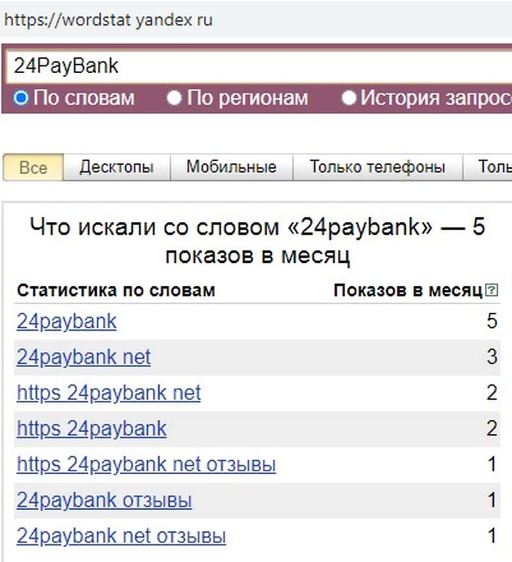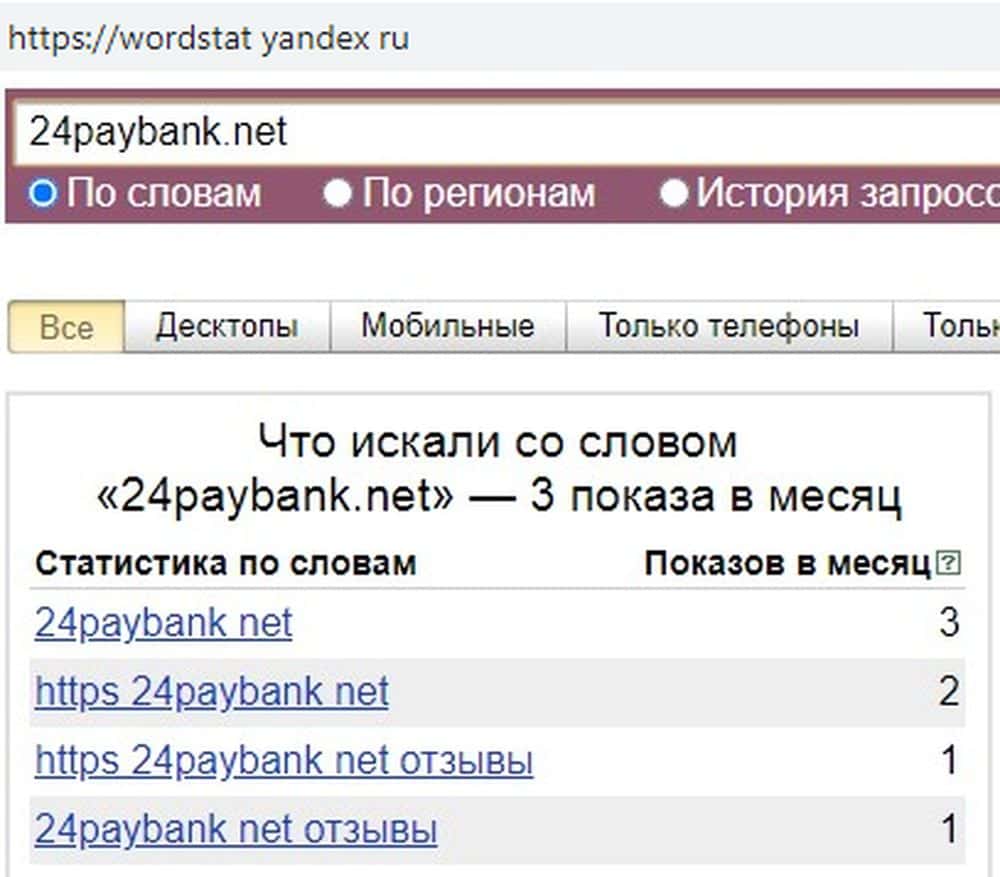 Насколько популярны дешевые шарлатаны 24PayBank Net в поисковике Яндекс?