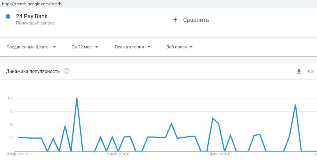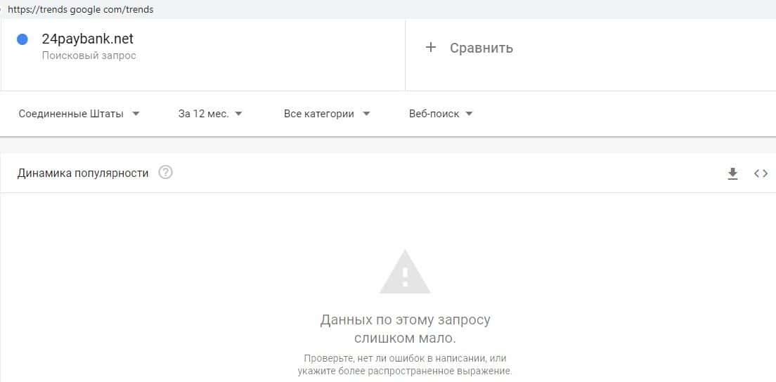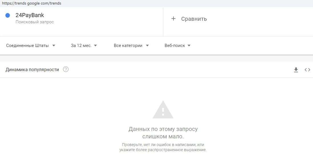 Остался без внимания пользователей сети и запрос "24PayBank". Система Гугл Трендз собирает данные за год, а лохотронщики уже давно испортили себе репутацию обманом.
