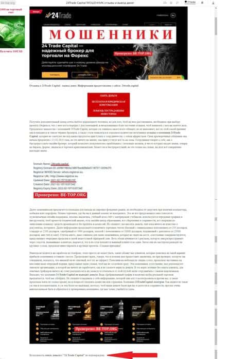 - Обзоры мошеннической конторы 24 Трейд Капитал, найденные на разных интернет-ресурсах