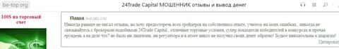 - Отзывы пользователей, столкнувшихся с реальными действиями псевдоброкерского лохотрона 24 Трейд Капитал