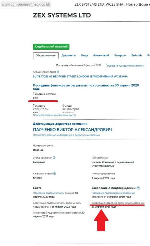 И клиентские транзакции у лохоброкеров 24 Трейд Капитал обрабатываются такой же сомнительной шарашкой ZEX SYSTEMS LTD, у которой просрочилось и даже не было обновлено заявление о подтверждении.