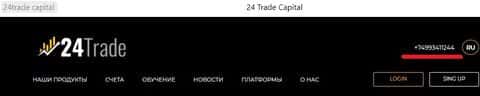 В подвале сайта проходимцев 24Trade Capital можно заметить еще один номер телефона, который указан разве что для отвода глаз: