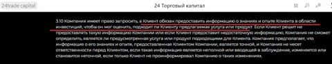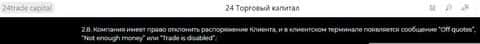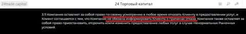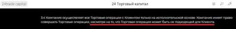 Мошенники 24 Трейд Капитал оставляют и право вообще не обращать внимание на распоряжения клиента и отклонять их.