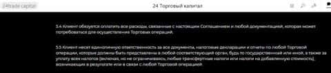 Лохоброкеры 24 Трейд Капитал обязуют клиентов оплачивать все необходимые расходы. А придумывать их они будут легко и обязательно.