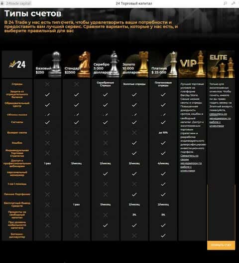 Типы счетов мутноброкерской шарашки 24 Трейд Капитал