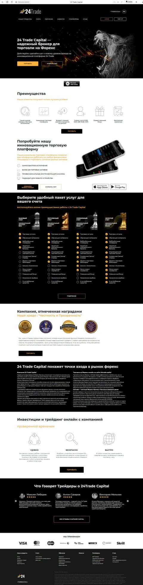 - Главная страница лохосайта 24 Трейд Капитал выглядит как приманка для новоиспеченных трейдеров