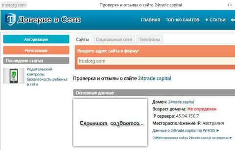 Специализированный сайт trustorg сom не смог определить возраст сайта 24trade capital.
