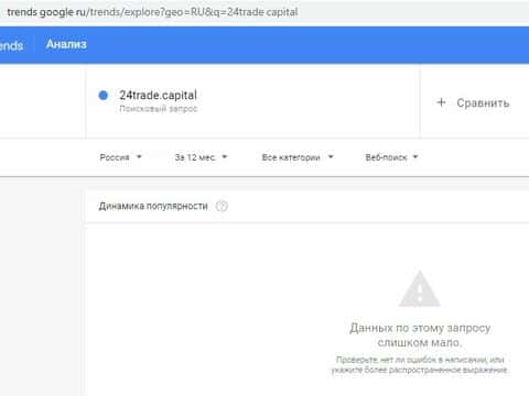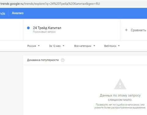 - На сколько популярен бренд проходимцев 24Trade Capital в системе Google