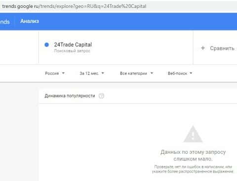 По количеству запросов бренда "24Trade Capital" в Google так же нет никаких данных.