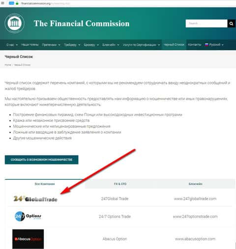 The Financial Comission опубликовала кухню 247 Глобал Трейд в черный список