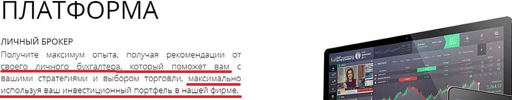 Сразу же, как и все мошенники, жулье 247 Инвестментз объясняют, что каждому дадут по личному агенту, который будет советовать правильную стратегию торговли. Вот только правильную для кого? Конечно же для самой шарашкиной конторы 247 Инвестментз, которая знает только одну стратегию. Слить ваш депозит себе на счет.