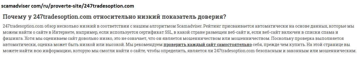 Авторитетные источники не рекомендуют сотрудничать с жуликами 247TradesOption