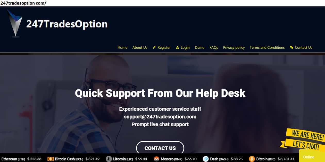 247tradesoption com - официальный сайт мошеннической конторы 247 Трейдс Опцион