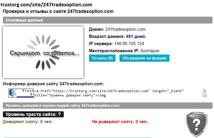 - Автоматическая проверка конторы 247 Трейдс Опцион показала низкий уровень поддержки трейдеров