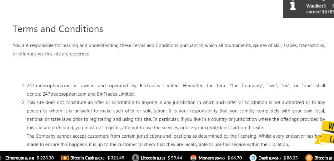 Клиентское соглашение лоховодов 247 Трейдс Опцион - обыкновенная пустышка