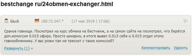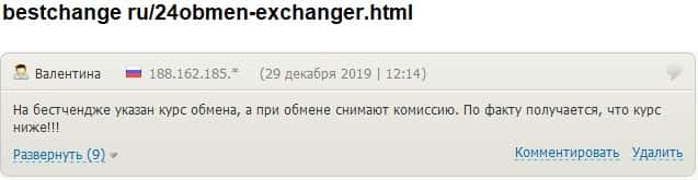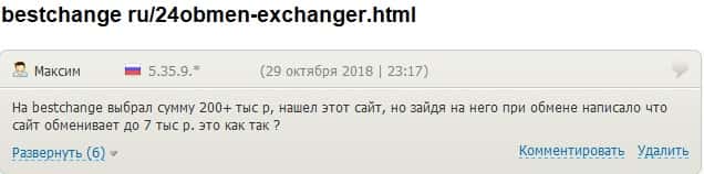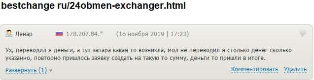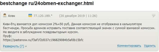 - 24х7 Обмен развели очередного клиента на дополнительной комиссии