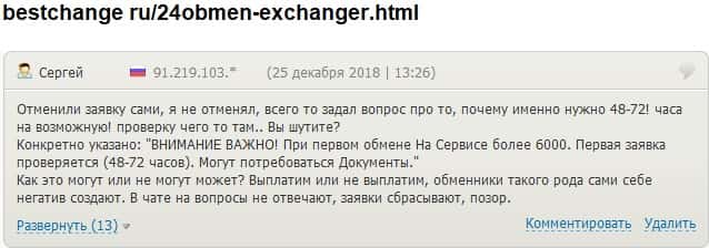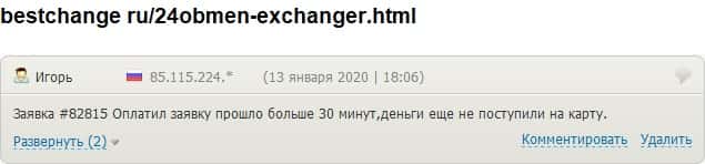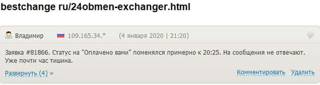 - 24x7Obmen Com задерживали платеж клиенту