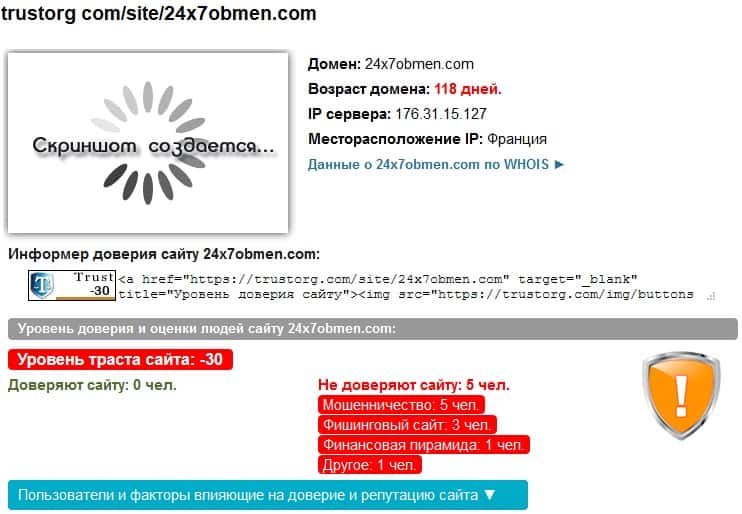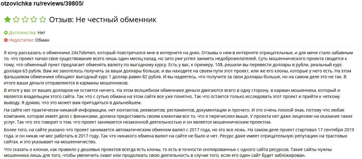 На известном авторитетном ресурсе пользователи не доверяют конторе 24x7Obmen Com