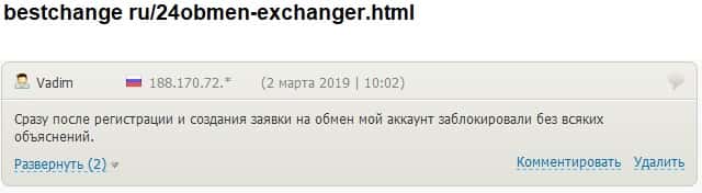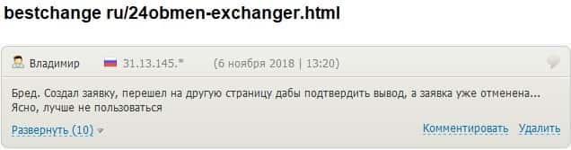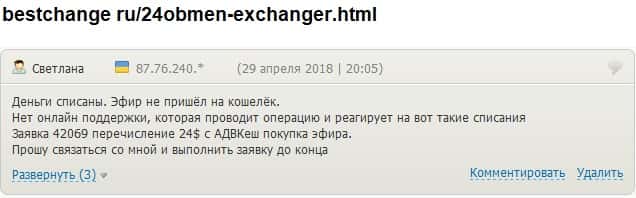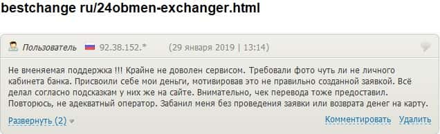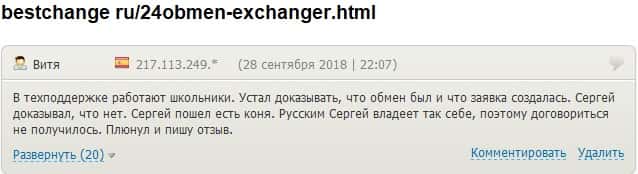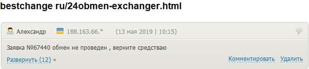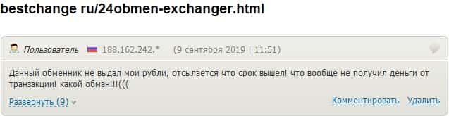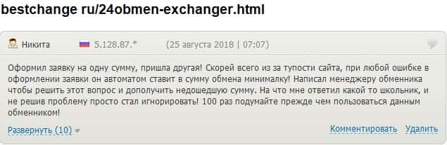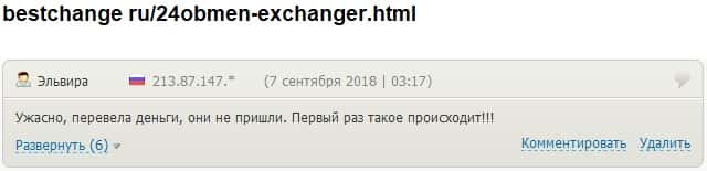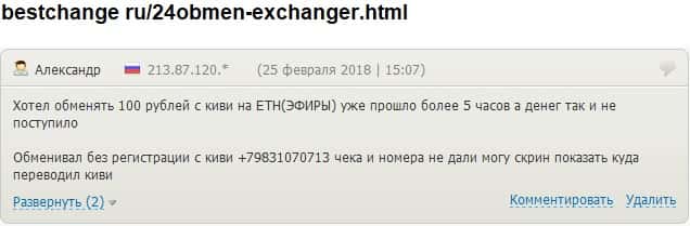 - 24х7 Обмен кинули очередного своего клиента на деньги