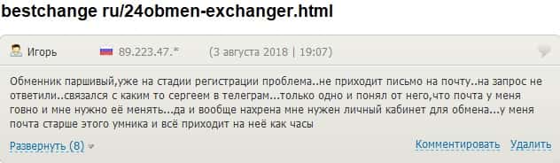 Клиенты 24x7Obmen Com жалуются на ужасный сервис