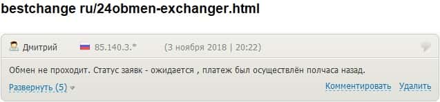 - 24x7Obmen Com не провели платеж очередному клиенту