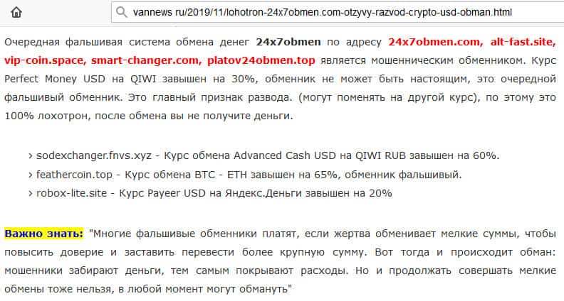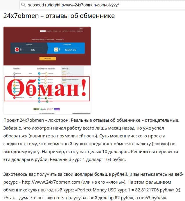 О фальшивом обменнике 24x7obmen