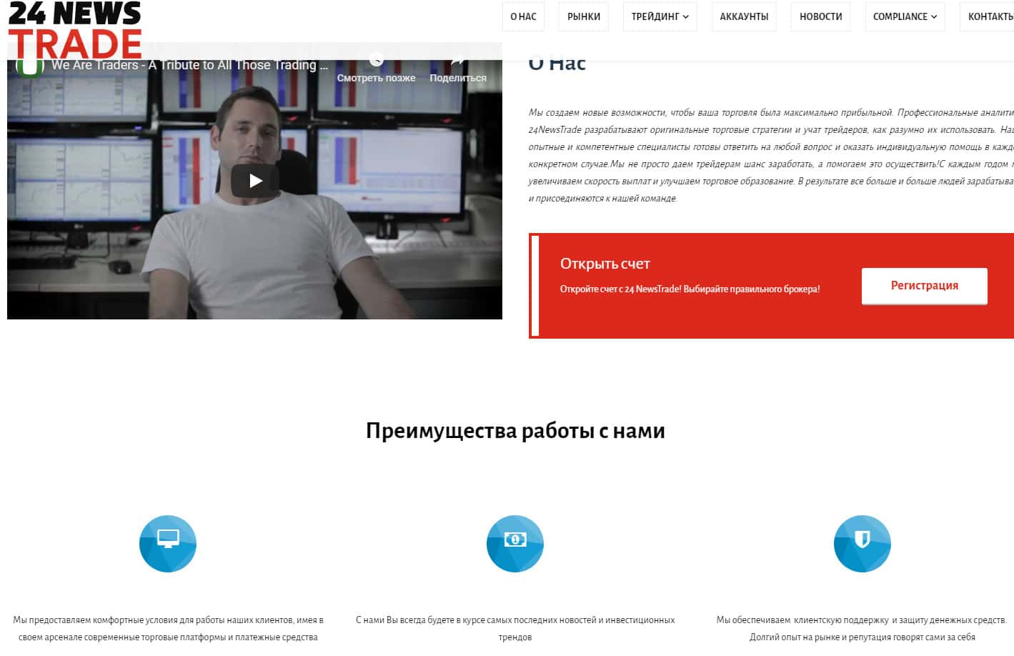 - Обзор на внешний вид сайта мошенников 24 Ньюс Трейд