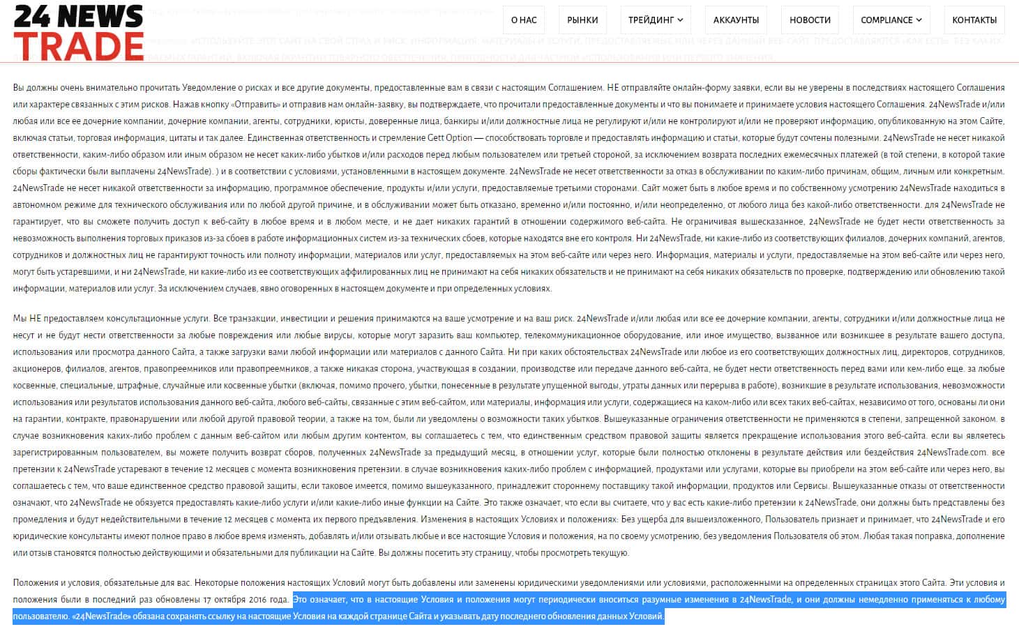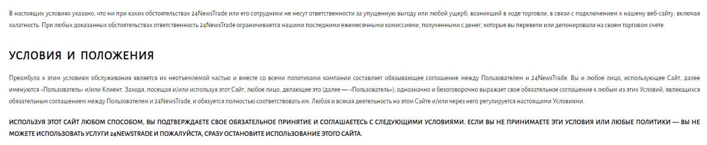 Перечень условий клиентского соглашения аферистов 24News Trade