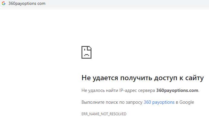 Аферюги из надувательской форекс компании 360 Пэй Опционс соскамились и прикрыли свой нелегальный ресурс