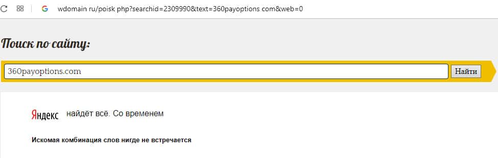 Из-за уймы постоянных исков, судов, жалоб и негативных отзывов от недовольных трейдеров о сотрудничестве с мошенническим биржевым брокером 360 Pay Options, руководители данной плутовской организации приняли продуманное решение по-быстрому замести за собой следы и скрыться. Переходя на их ресурс, оказываемся на пустом сайте.