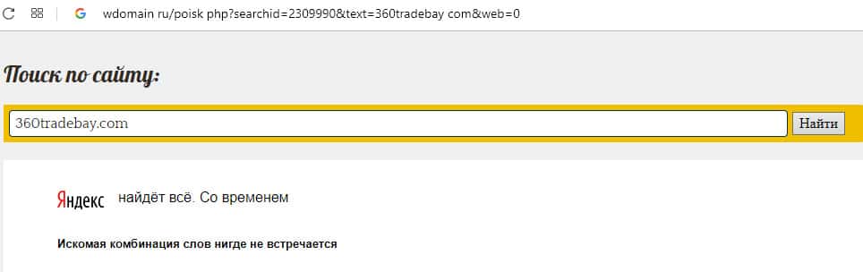 Согласно информации, предоставленной на известном интернет-ресурсе wdomain ru, лживая брокерская контора 360 Трейд Бай не оставила за собой вообще никаких следов ни о возрасте домена, ни о самой жульнической шараге. Эти жулики сумели наворовать уйму денег у своих трейдеров, оставив их с пустыми карманами.
