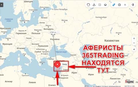 У нас есть информация по поводу местоположению главного офиса кухни 365 Трейдинг. Оказывается контора находилась на Кипре и всю свою деятельность вела из оффшорных островов. Вот собственно и сам адрес для тех, кто захочет настигнуть мошенников врасплох: Office 201 of Stassinos Building, 2 Ayias Elenis Str. 1060, Nicosia, Cyprus.