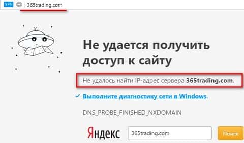 Если пробить в интернете официальный сайт конторы 365 Трейдинг, то мы можем увидеть оповещение о том, что не удалось найти IP-адрес сервера 365trading com. Жулье скрылось вместе с награбленным, отправилось делить деньги в кипрские оффшоры. Нам только можно ожидать возвращение мошенников на рынок лохотронов, только теперь под другим названием. Как говорит практика - вора можно узнать по почерку. Так и здесь - ищем похожий почерк из бинарных шараг.