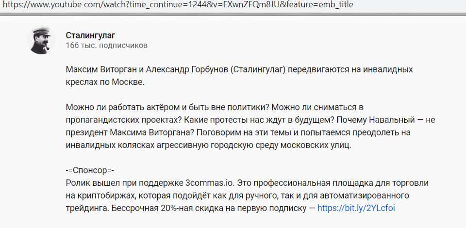 - Блогер Сталингулаг продвигает лохотрон 3Коммас