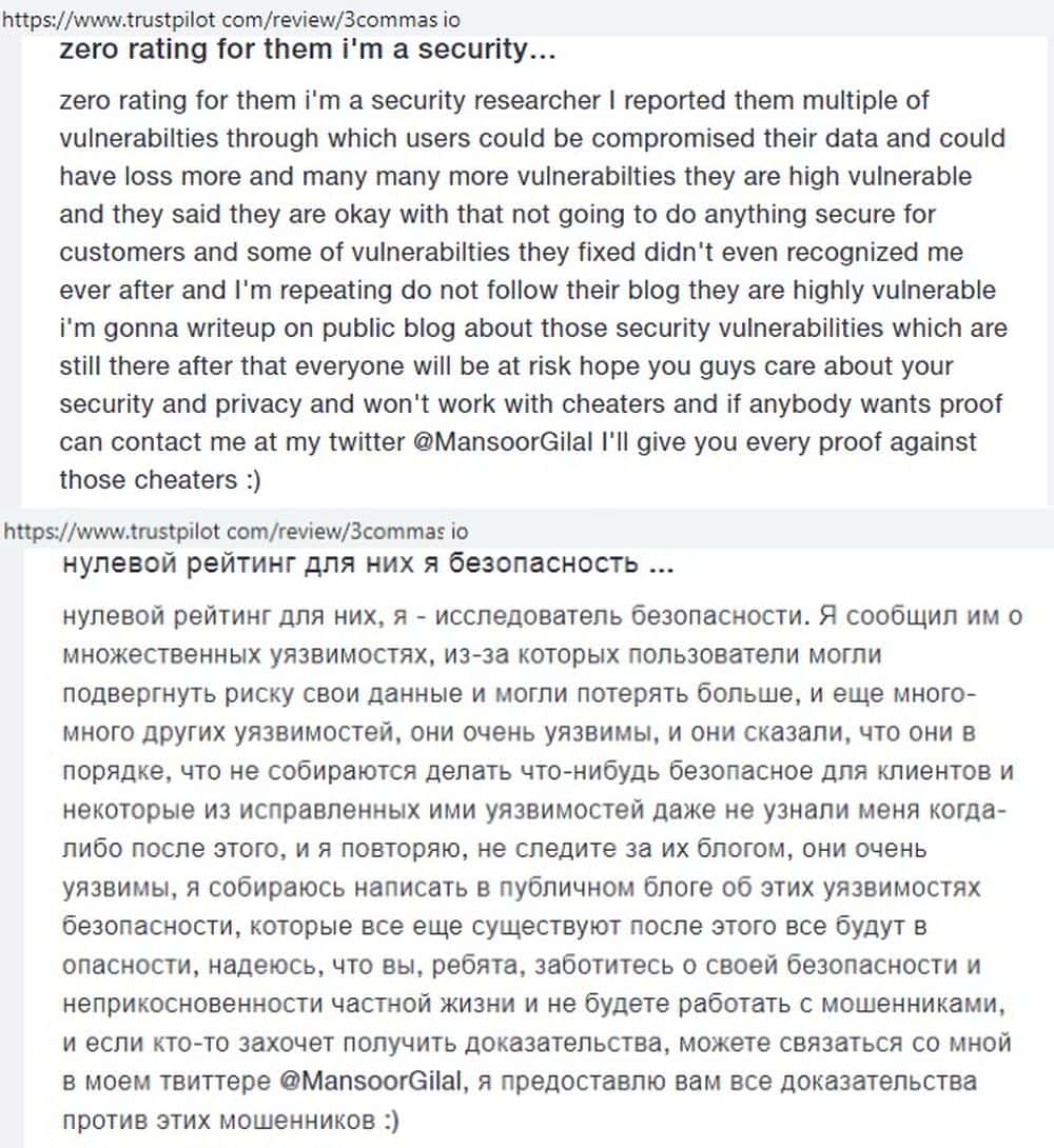 Источники, которые использовались при написании материала о жуликах 3Commas io