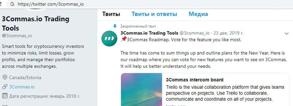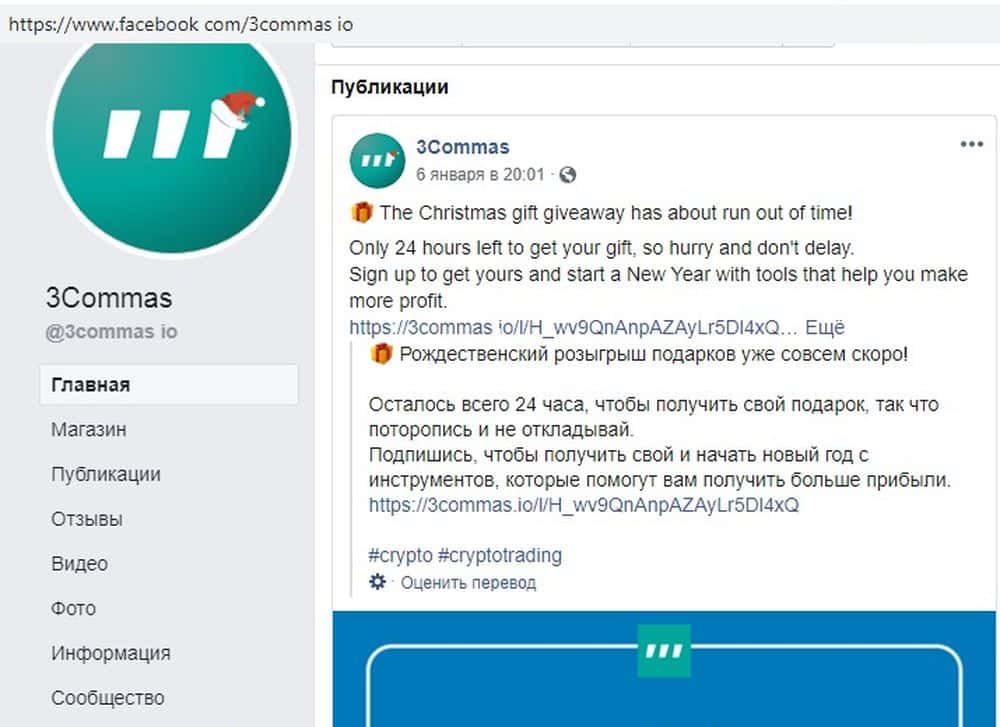 В Твиттере та же история - контент на английском, те же новости и те же статьи о том, что заработать на криптовалюте можно только если у вас есть особенные боты от 3Коммас. Чтобы привлечь людей к своим постам кидалы регулярно проводят розыгрыши и всевозможные акции, предлагают бесплатные тестовые периоды.