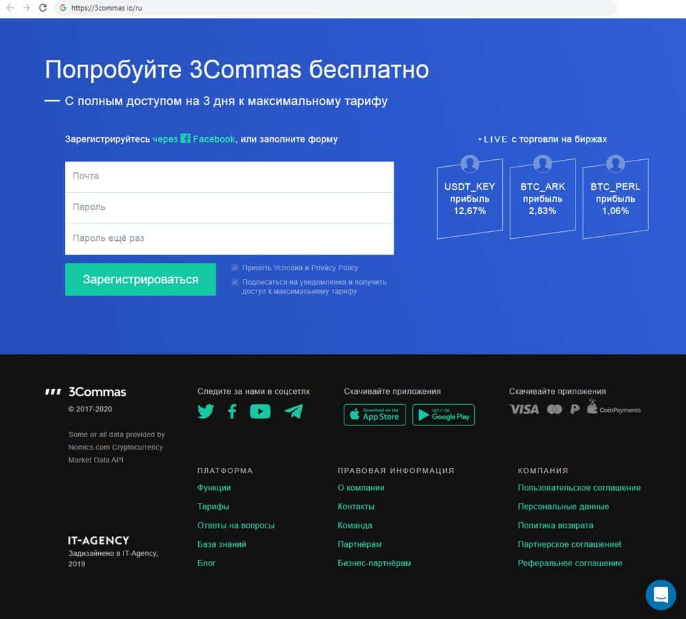 3Commas io - лохотрон, якобы продающий функционал для автоматизированного осуществления торгов на подключаемых биржах. Якобы кидалы разработали уникальный программный интерфейс. Концентрируются мошенники на продаже торговых ботов для криптобирж и обворовывают трейдеров, списывая слив депозита на программные сбои.