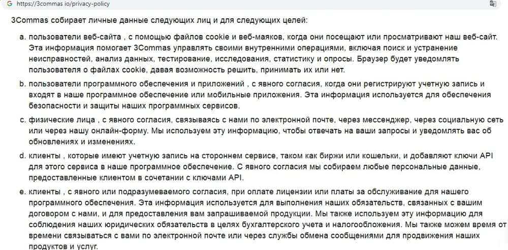 Что у жуликов 3Commas io с политикой конфиденциальности?