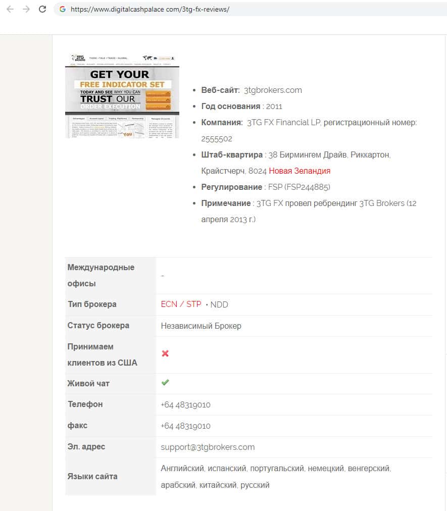 На одном из сайтов который обозревал жуликов 3 ТГ Брокер сохранилась часть информации о псевдоброкерах. В оставшейся информации сохранилось изображение старого сайта, так же остались контакты разводил и выдуманный адрес конторы. Больше никакой информации о сайте жуликов не удалось найти.