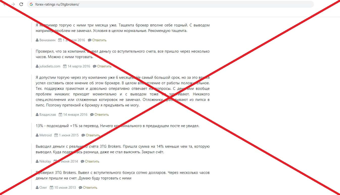 Ссылки на источники информации о махинаторах 3TG Brokers