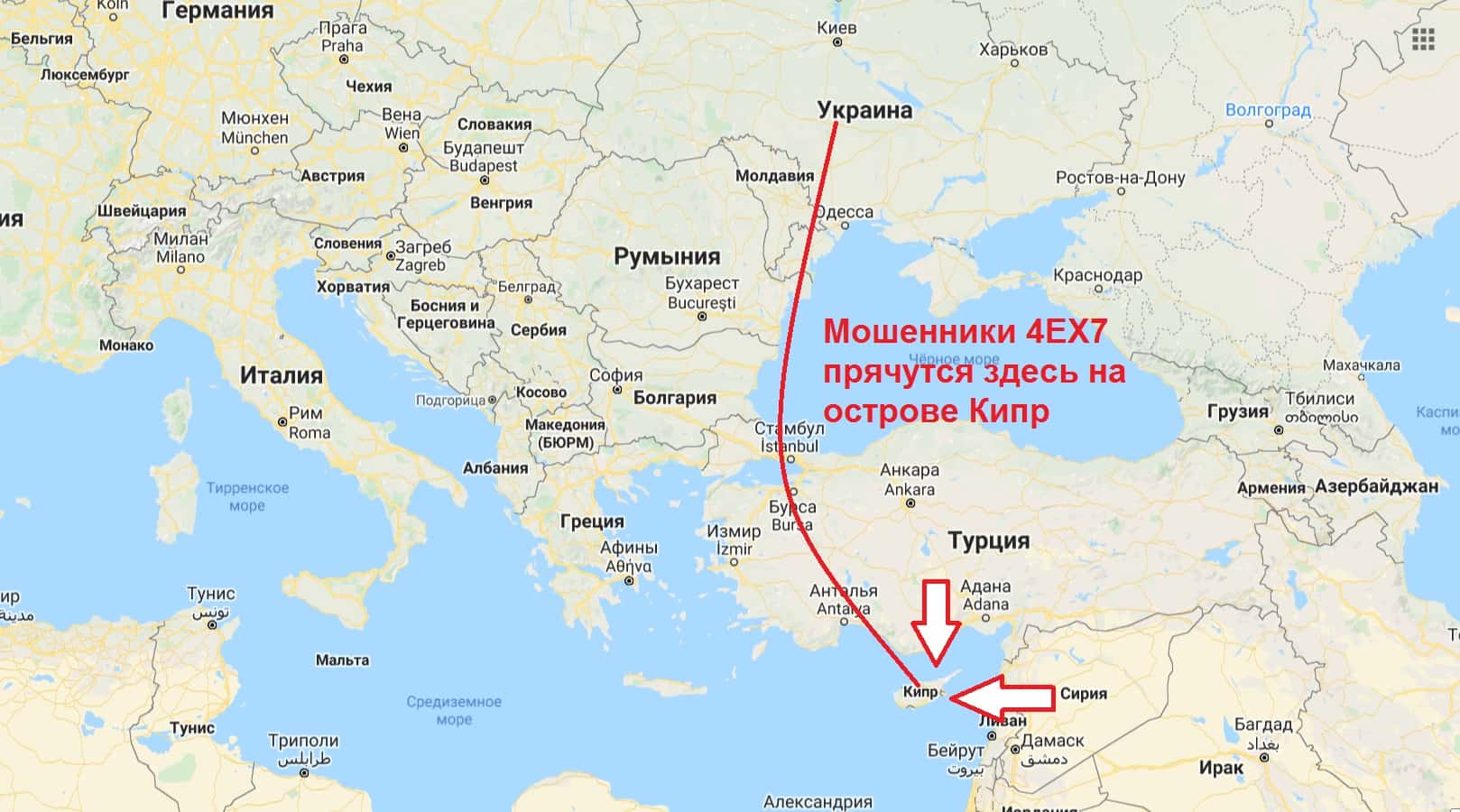 - Оффшорное место регистрации мошеннической организации 4EX7