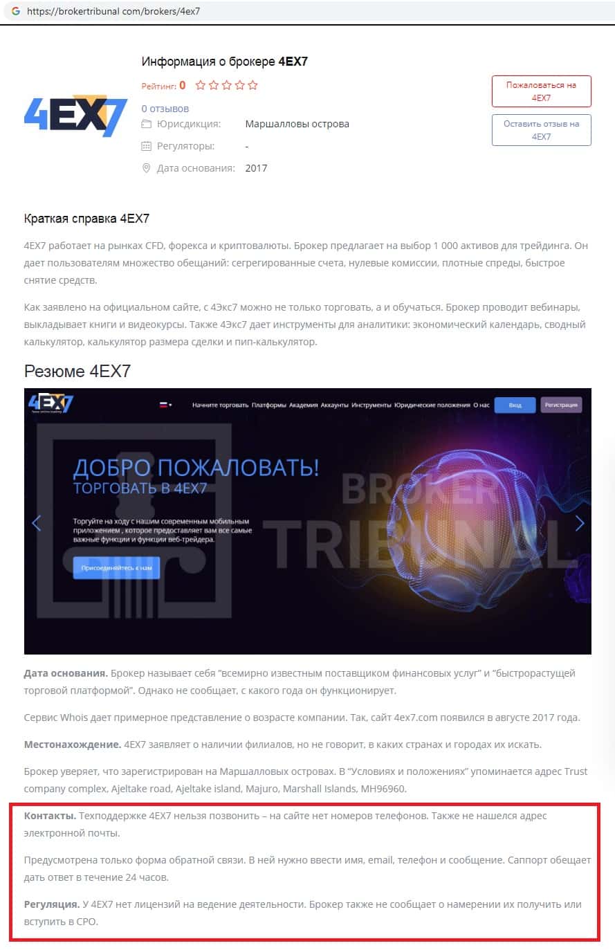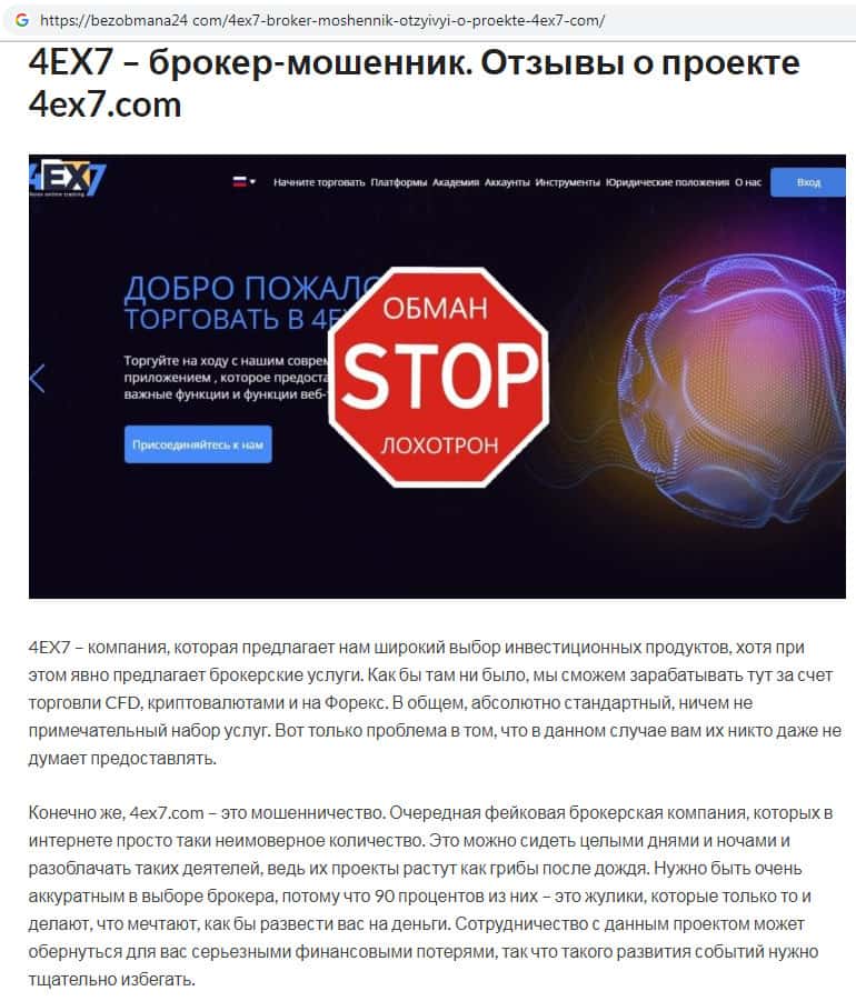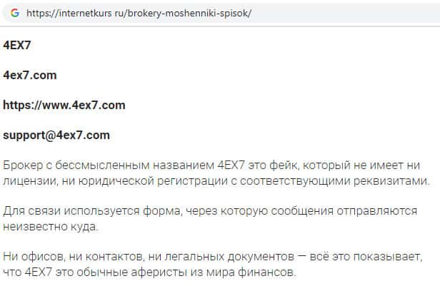 - 4EX7 - псевдо-брокерская организация, от которой нужно держаться подальше