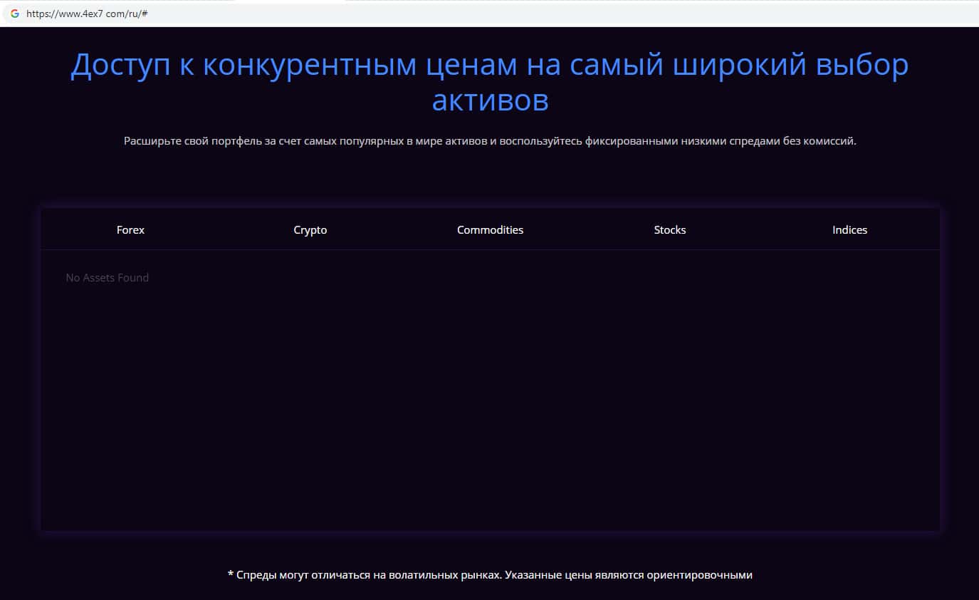 - Финансовые инструменты на сайте псевдо-брокерской организации 4EX7
