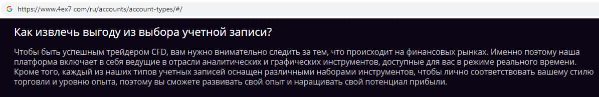 Типы торговых аккаунтов представленных на сайте скам-брокера 4ИИкс7